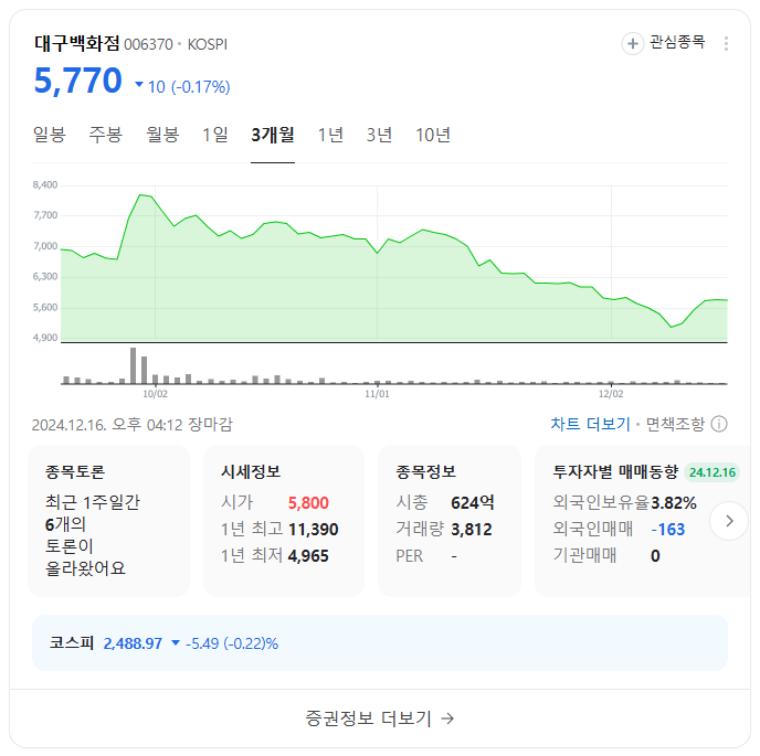 지역 백화점으로서 대구 및 경북 지역의 소비 동향과 밀접하게 연관되어 있습니다.