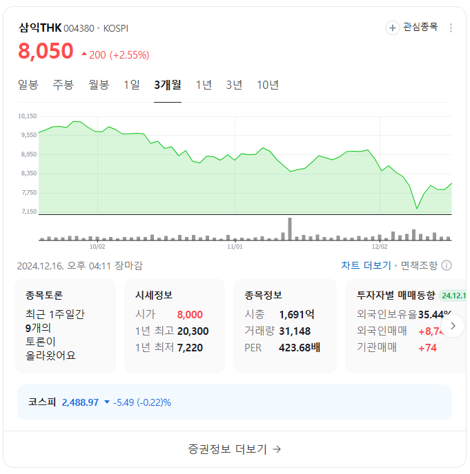 삼익THK는 기계 부품 제조업체로,