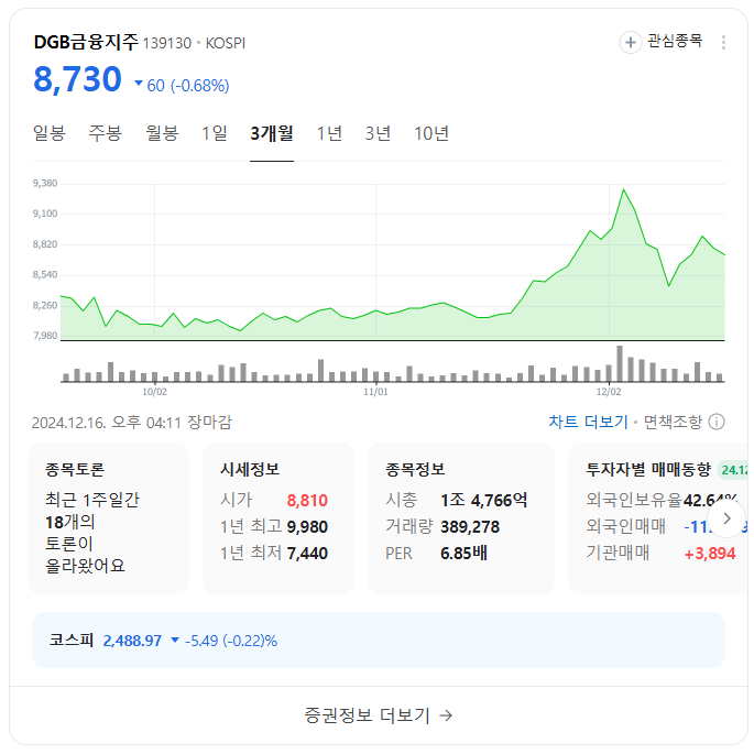 대구의 금융 중심 기업으로, 김부겸의 지역적 기반과 맞닿아 있습니다.