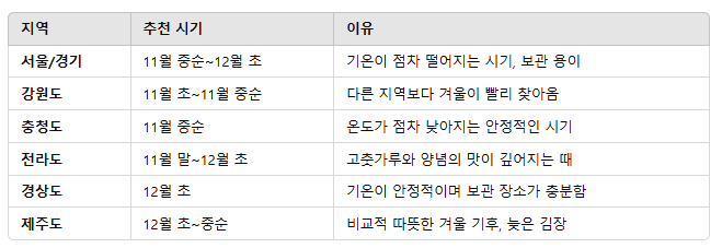 『지역별 김장 시기』