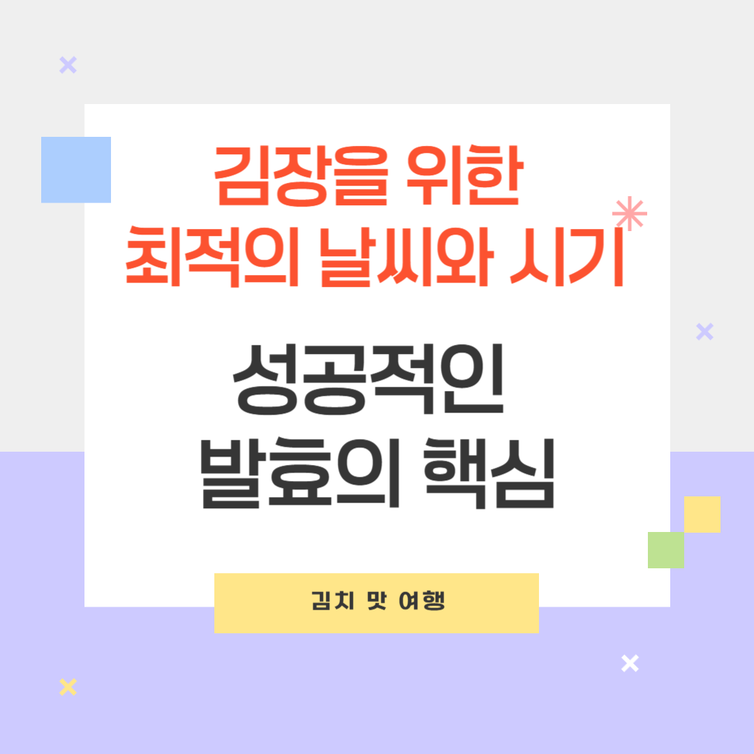 김장은 우리나라 겨울철 가장 중요한 문화 중 하나입니다. 성공적인 김치를 만들기 위해서는 적절한 날씨와 시기를 선택하는 것이 중요합니다. 이번 포스팅에서는 김장을 준비할 때 알아야 할 최적의 조건과 지역별 시기, 그리고 발효에 적합한 온도를 중심으로 살펴보겠습니다.