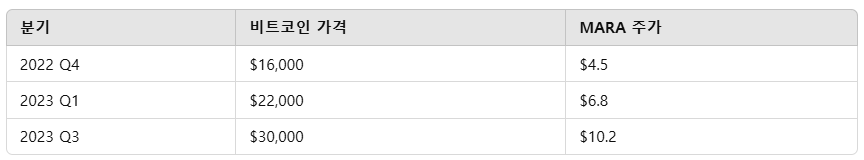 비트코인 가격이 상승하면 MARA의 채굴 수익도 증가하여
