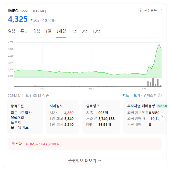 iMBC는 계엄령 이전 대비 두 배 이상 상승하며