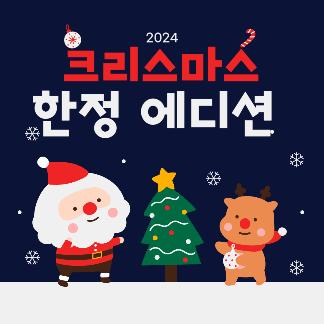 크리스마스 컬러 테마와 반짝이는 디테일이 특징.