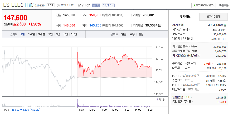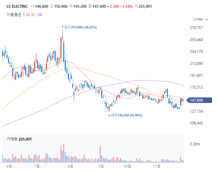 최근 LS일렉트릭의 주가는 과도한 하락세를 보였으나,